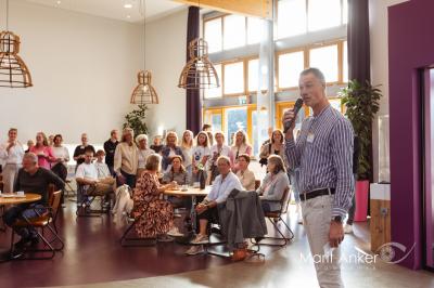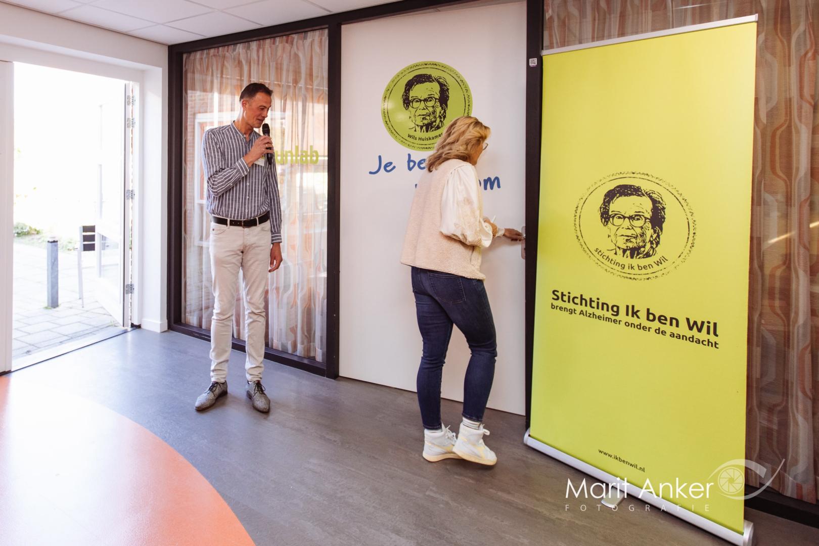 De opening van Wils huiskamer werd verricht door Aal Visser uit Dokkum. Ze is 53 jaar en op deze nog jonge leeftijd al te maken met dementie. Aal deed de huiskamer open alsof het haar eigen was, onder toeziend oog van familie, vrienden en vele belangstellenden. “Een emotioneel moment”, noemt voorzitter Dennis Mellink van stichting Ik ben Wil het. “Er is niet alleen heel lang naar toegewerkt door heel veel mensen, het is ook bijzonder dat we dit kunnen realiseren in Dokkum”, aldus Dennis. Hij bedankte dan ook iedereen die zich voor de huiskamer heeft ingezet en gaat inzetten vanaf dinsdag. Vrijwilligerscoördinator Kees Theissen beaamde dat en vertelde de aanwezigen over de invulling van de huiskamer.